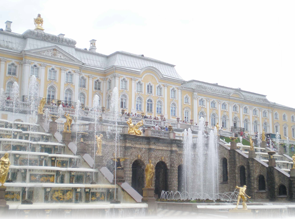 Petrodvoréts. Fue construido por Pedro I de Rusia, inspirado en el Palacio de Versalles.