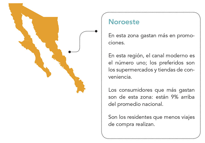 Con lo que respecta al Noroeste, la consultora informó que los residentes de esta región, son quienes más gastan en promociones, además de que tienen mayor poder adquisitivo y se nota en su ticket de compra que es el más alto del país.