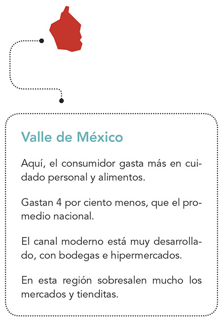 En el área metropolitana las personas gastan 4 por ciento menos que el promedio nacional y aunque el canal moderno está muy desarrollado, con la implementación estratégica de bodegas e hipermercados; los mercados y tienditas sobresalen de gran manera.