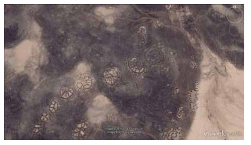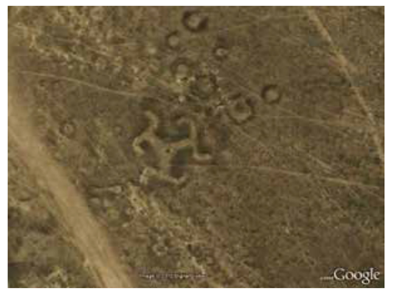 En 2007, un joven economista aficionado a la arqueología encontró en Kazajistán, a través de imágenes de Google Earth, más de 50 geoglifos de diferentes formas y tamaños. Entre ellos se encontraba una inmensa cruz gamada de origen desconocido. Estos dibujos tan extraños trazados en la tierra sólo son visibles desde el aire.