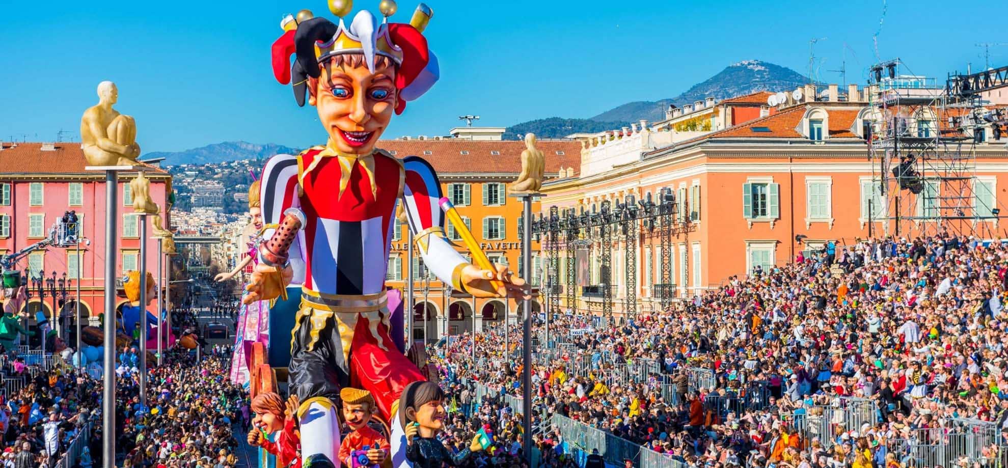 «El Carnaval reúne dos acontecimientos muy distintos: el Corso carnavalesco – de día o de noche- y la Batalla de flores. En la plaza Masséna, las carrozas alegóricas o burlescas desfilan, acompañadas de elementos de animación, espectáculos callejeros o conjuntos musicales internacionales.