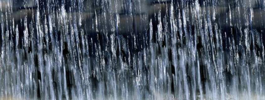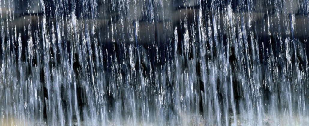 De lado izquierdo se observa la lluvia caer como una cascada, mientras que del lado derecho solo vemos gigantescos nubarrones.
