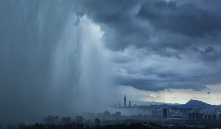 Impresionante momento en que una enorme tormenta de verano azota la capital de Taiwan en medio de la tarde.