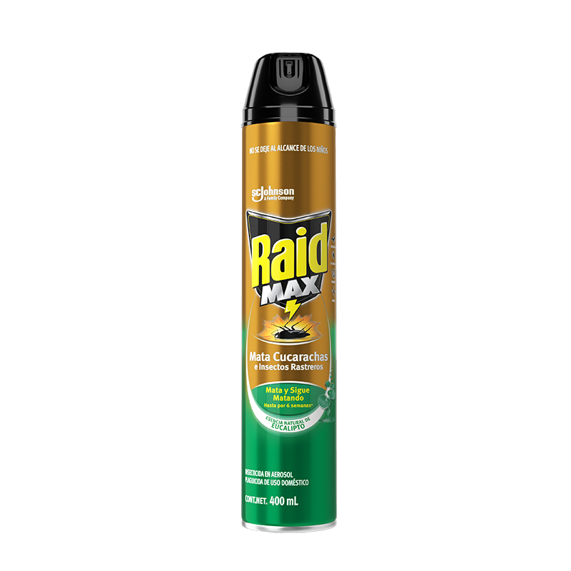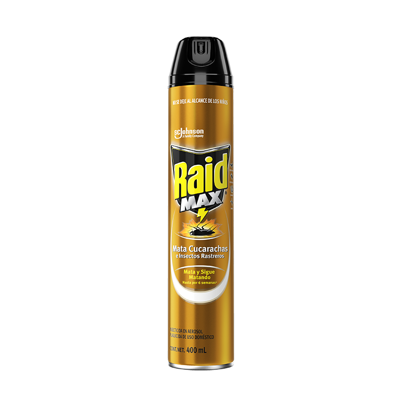 Raid Max está formulado con una combinación de activos que controlan rápidamente cucarachas y otros insectos rastreros, incluyendo escorpiones, ciempiés y arañas. Su acción prolongada continúa eliminando cucarachas y hormigas por hasta 6 semanas, previniendo la reinfestación. En el caso específico de la cucaracha alemana, se ha comprobado que Raid Max las mata rápidamente*.