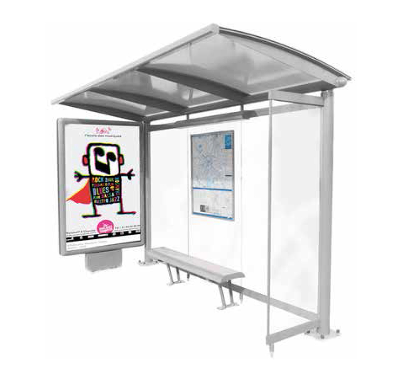 Alquila espacios publicitarios en letreros o paneles ubicados en las vías públicas, por ejemplo, en letreros o paneles ubicados en los paraderos de autobuses.