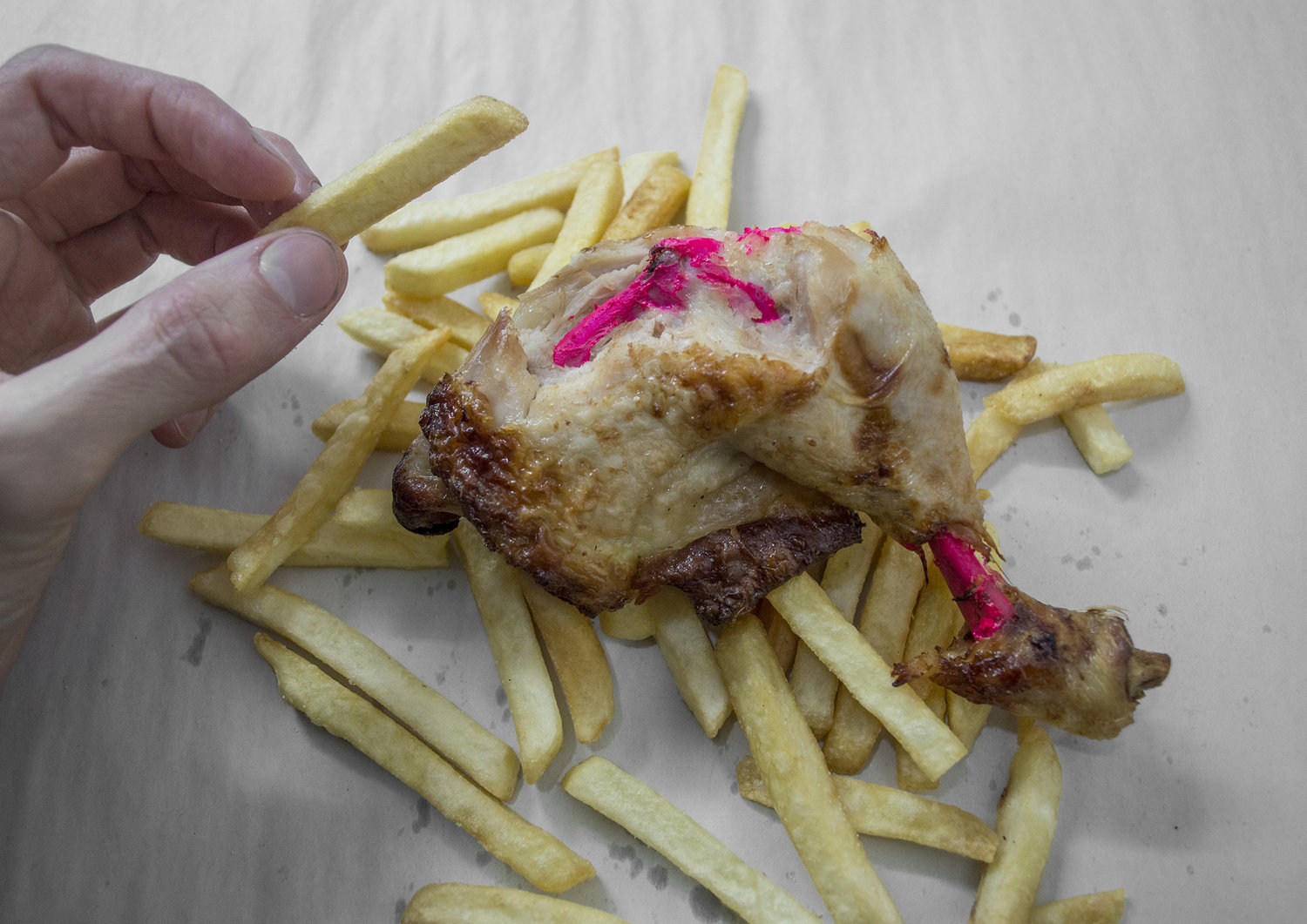 Pink Chicken Project sugiere cambiar el color de todos los pollos de la tierra. Un grupo de diseñadores e ingenieros quieren modificar genéticamente el ADN del pollo, para que las futuras aves nazcan con huesos y plumas de color rosa. ¿Porqué alguien querría hacer eso? ¿Cómo lo harán? La modificación supuestamente se llevará a cabo mediante la técnica CRISPR para editar genes, con la adopción del color rosa, que con el tiempo el color rosa se pueda heredar. El color rosa vendría de cochinillas, un pequeño insecto utilizado comúnmente en el colorante alimenticio. El error produce una sustancia química llamada ácido carmínico, que se combina con el calcio de los huesos para formar un colorante. ¿Por qué quieren hacerlo? Según el sitio web del proyecto, debemos dejar mensajes para la futura generación sobre el impacto de la humanidad en el medio ambiente, en forma de huesos rosas de pollo desechados. Los pollos son los animales de granja más comunes del mundo. Cada año más de 60 mil millones de pollos mueren, según The Guardian, y sus huesos podrían terminar fosilizados en vertederos de todo el mundo. También se quiere incrustar un mensaje en el ADN para generación futuras, donde se explica por qué el mundo fue corrompiéndose. Si este proyecto se lleva a cabo, por todo el mundo los pollos rosas se irán reproduciendo hasta desaparecer a los pollos blancos. ¿Que opinas?