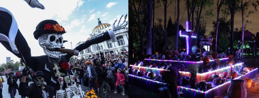 Estos magnos festejos, comenzaron el sábado con el mencionado desfile dividido en tres partes: Viaje al Mictlán, La Muerte Niña y Pal’ panteón, que arrancaron el Ángel de la Independencia hacia el Zócalo capitalino, donde los asistentes pudieron visitar la Ofrenda Canto al agua, de Betsabeé Romero; un claro homenaje a la Gran Tenochtitlan.